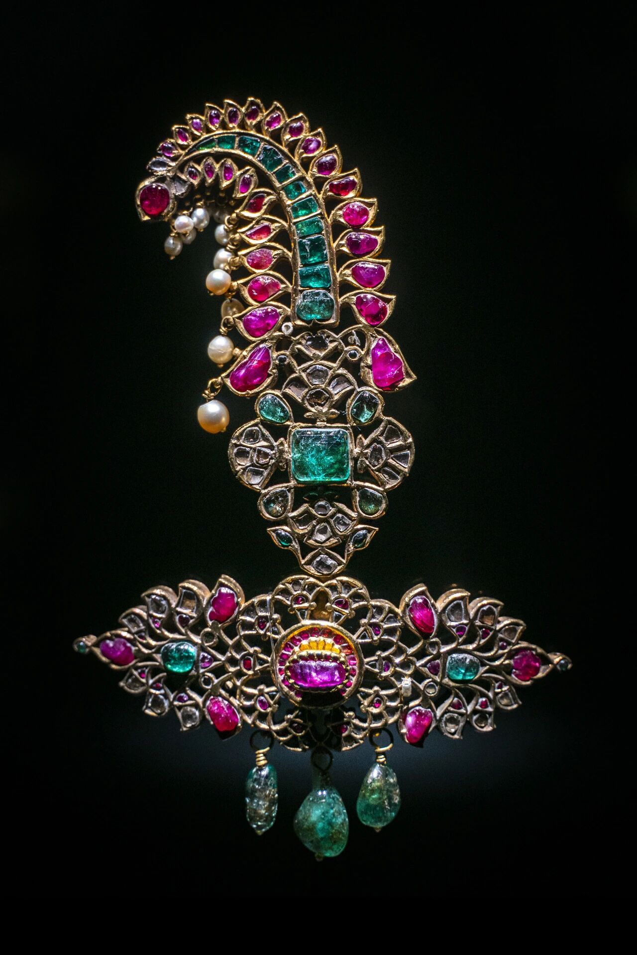 看点:莫卧儿帝国(1526-1857年)地处陆上丝绸之路要冲,是东西方文明交汇的重要节点。这个由突厥-蒙古血统征服者建立的帝国,开创了南亚次大陆政治统一与社会经济文化繁荣的时代。莫卧儿王朝的珠宝艺术以多元融合与极致工艺著称,将波斯美学、印度本土工艺与欧洲风尚熔于一炉,造就了独树一帜的珠宝风格。