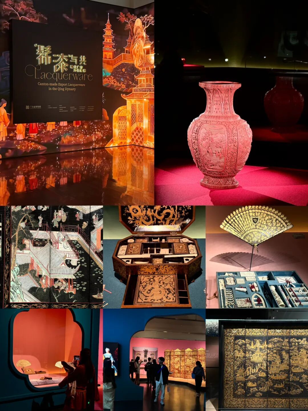 看点:展览汇聚了广东省博物馆、洛里昂法国东印度公司博物馆、卡地亚典藏、香港艺术馆、香港海事博物馆等多家收藏单位的130余件/套珍贵藏品,其中多件展品为首次在中国亮相。展览通过四个精心设计的单元展开叙事,“千文万华:中国传统漆艺”从原料到工艺,追溯中国千年漆艺发展脉络;“错彩镂金:广作外销漆器”聚焦广作外销漆器,展示其源流、产地及工艺;“时尚风标:外销漆器在西方”再现东方漆艺珍品在欧美社会中的流布与影响;“熠熠生辉:当代漆艺创作”则呈现传统工艺在当下的创新传承。